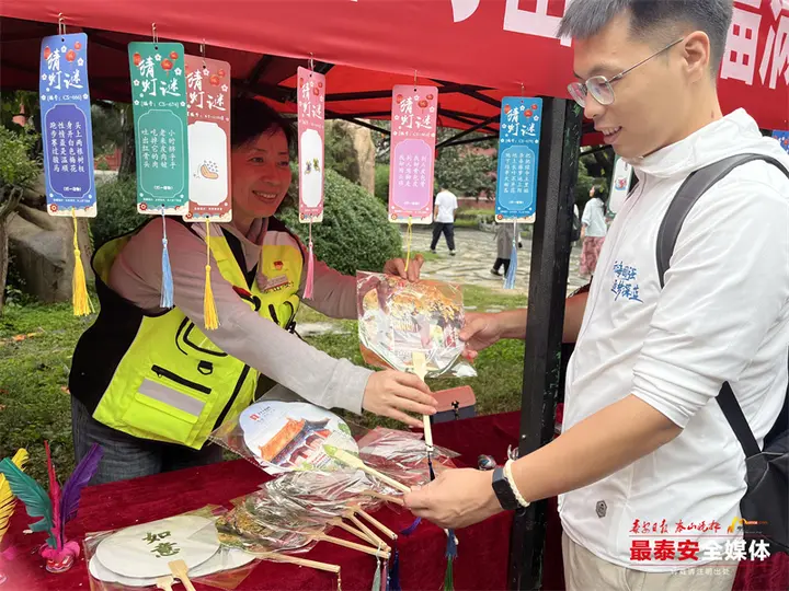 活动还特设中秋宣传咨询台,市博物馆工作人员与泰山科技学院大学生志愿者联手,不仅为游客提供岱庙游览路线指引、中秋活动详情解答等服务,还免费发放泰山及岱庙主题宣传册页,助力市民游客全方位了解泰山文化底蕴。